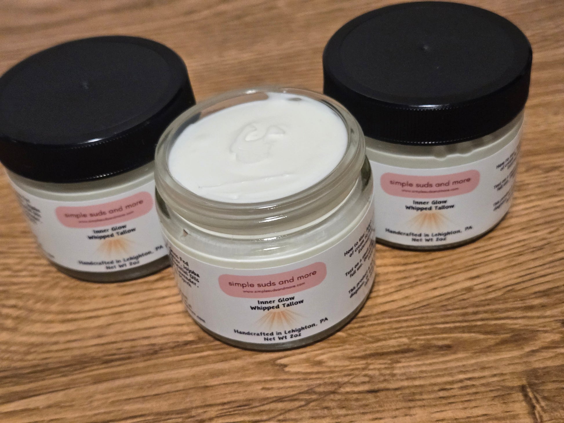 Nourish your skin with the grounding, radiant comfort of our Inner Glow Tallow Moisturizer, handcrafted in small batches using pure, nutrient-rich ingredients. This deeply moisturizing cream begins with whipped tallow—known for its skin-loving vitamins, fatty acids, and incredible ability to mimic your skin’s natural oils.