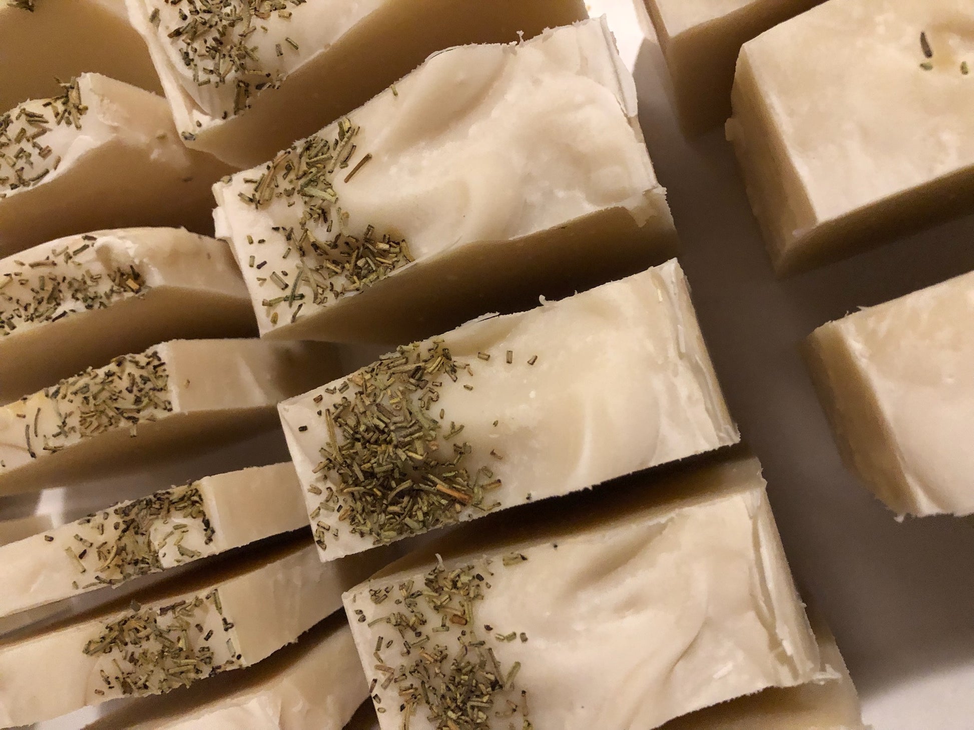 Ingredients: Saponified Oils of Grass Fed Tallow, Coconut Oil, Shea Butter, Olive Oil, Castor Oil, Sodium Lactate, Rhassoul Clay, Rosemary and Peppermint Essential Oils